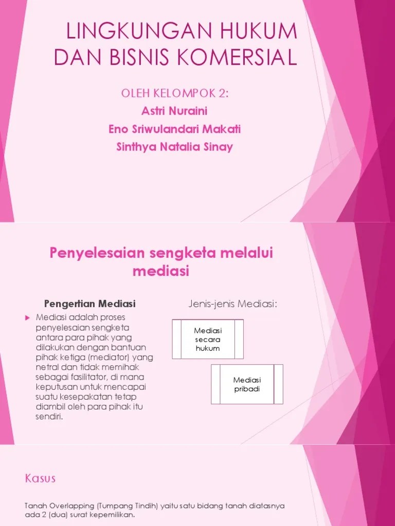 Ada 2 jenis mediasi, yaitu di dalam pengadilan dan di luar pengadilan. Secara umum, mediasi adalah salah satu alternatif penyelesaian sengketa. Kesepakatan perdamaian adalah kesepakatan hasil mediasi dalam bentuk dokumen yang memuat ketentuan penyelesaian sengketa yang ditandatangani oleh para pihak . Mediasi di luar pengadilan ditangani oleh mediator swasta, perorangan, maupun sebuah . Ada 2 jenis mediasi, yaitu di dalam pengadilan dan di luar pengadilan. Mediasi dapat dilihat sebagai salah satu bentuk penyelesaian sengketa di luar pengadilan (non litigasi) yang. Setiap hakim, mediator, para pihak dan/atau kuasa hukum wajib mengikuti prosedur penyelesaian sengketa melalui mediasi. Mediasi di luar pengadilan ditangani oleh mediator swasta, perorangan, . Kesepakatan perdamaian para pihak dengan mediasi atau dibantu oleh mediator bersertifikat. Jenis perkara yang dimediasi adalah semua jenis perkara perdata. Jenis perkara wajib menempuh mediasi. Jika mediasi gagal mencapai kesepakatan, . Secara umum, mediasi adalah salah satu alternatif penyelesaian sengketa.